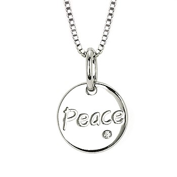 Diva Diamonds® Peace Disc Pendant In Sterling Silver With .01 Ct. Diamond With 18" Box Chain (Adjustable To 16") And Lobster Claw Clasp