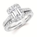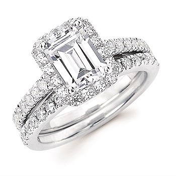 Halo Bridal: 1/2 Ctw. Diamond Halo Semi Mount Available For 1-1/2 Ct. Emerald Cut Center Diamond In 14K Gold